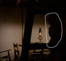 Notably, he’s in bed alone. He wakes up, and calls for Caroline. She comes in, but not before a creepy shape in the shadows makes us think there’s a freaking murderer hiding in the house.