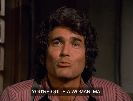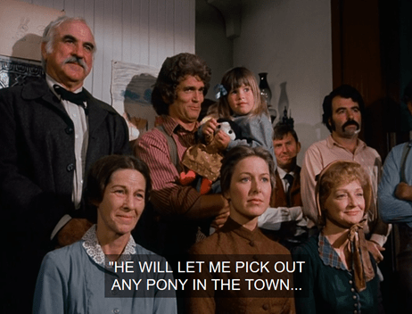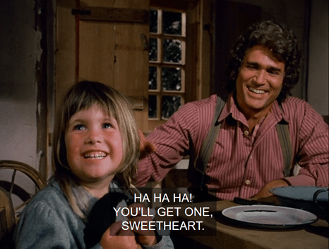 “It’s hard to believe that’s the same little girl we couldn’t get out of bed this morning,” Charles says when they’ve gone up. It is a little, but hey, Michael Landon, it’s TV.