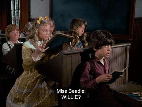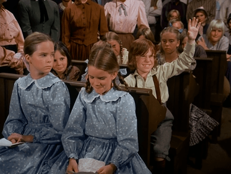 In this scene, we also get our first good look at Willie Oleson in the front row, who looks like he’s about three and a half years old.