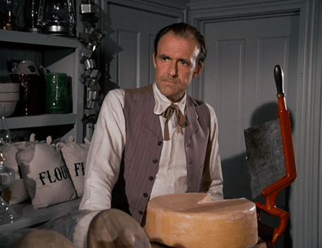 Mrs. Oleson rises, witch-like, from where she was concealed under the check-out counter.