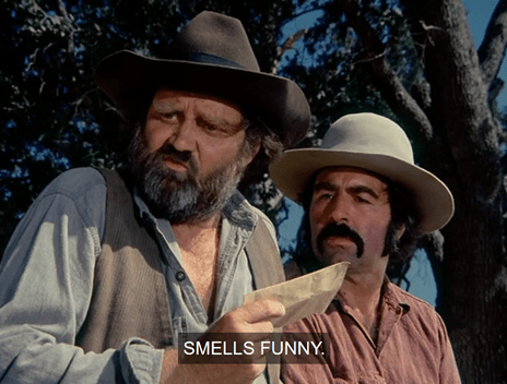 Captain Howdy shows the letter to Mustache Man, who sniffs it. “Smells funny,” says Howdy. “It’s lemon verbena,” Edwards says hilariously. This show is not known for running gags, or really for intentional comedy at all, but this episode is quite funny. Well done, Joel Murcott.