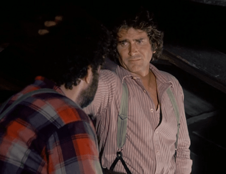 Anyways, Mr. Edwards asks Charles if he can borrow some soap. Charles, his voice breaking, says “It’s comin’ right up,” and tousles Edwards’s hair. It’s a rather intimate gesture, but Michael Landon’s Charles has a sort of 1970s hippie-ish sense of masculinity . . . thank goodness!