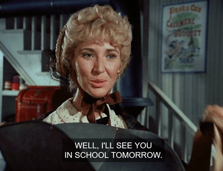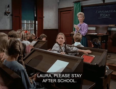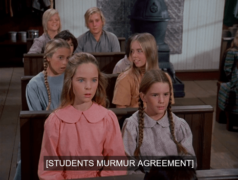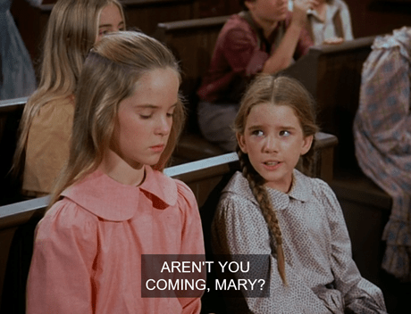 Meanwhile, at school, Miss Beadle announces the test and dismisses the younger kids. Laura stays behind and says “Aren’t ya comin’, Mary?” like the little guilt-gopher she is.