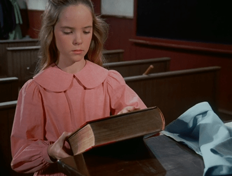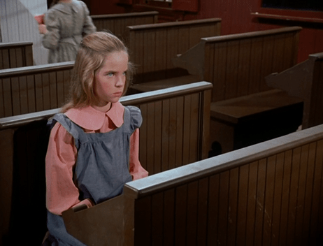 Pardon the digression, but speaking of Little House’s wobbly universe, there’s something odd about the school scenes in this one. It took me a while to figure it out. At first glance, it appears nearly everyone’s here today, save for Christy and the odd Nondescript Helen.