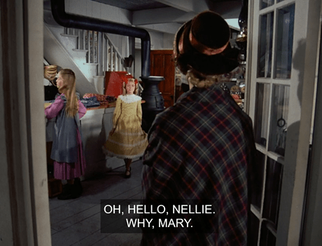Then, almost without waiting for an answer, she says, “You should look nicer when you come to work in a store. Maybe your mother would let you wear your Sunday dress.” Mary quips that since she doesn’t worship in the Mercantile, she’s not going to wear her church dress here either. It’s a weak retort and Nellie knows it.