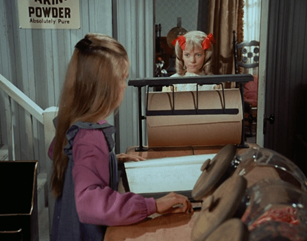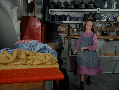 I’m sorry to point it out, but Miss Beadle’s buggy is ALSO drawn by Bunny the horse. Since we can actually see the “other Bunny” in her pen in the background, we can either assume Walnut Grove has multiple black horses with identical facial markings, or the showrunners just weren’t super-careful about which black horse they put where for filming.