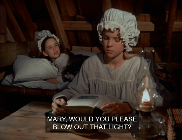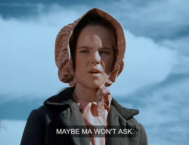 Laura rolls over in bed and asks what Mary’s doing. She says her schoolwork, which Laura notes she said she already did at the store. Mary confesses she has decided to defy Ma and take the exam after all. She says she’s sure to win the prize, and then Ma will be so proud she won’t be angry. Laura’s like, ulp.