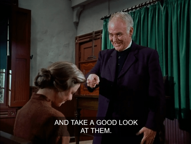 But then Miss Beadle comes in, and we get a treat as Nellie’s hard rattlesnake eyes brighten and she smiles. “Oh, hello, Miss Beadle!” she says, and actually curtseys.