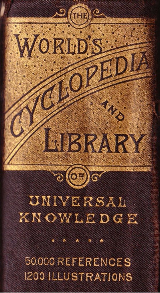 The next day, school lets out, and Mary rushes to study hall, I mean work. We see her perusing a couple volumes from the bookshelf, including an arithmetic book and one called “World Cyclopedia” – probably meant to be one of the World’s Cyclopedia series of 19th-Century reference books, circa 1884, on topics such as history, science, and the like.