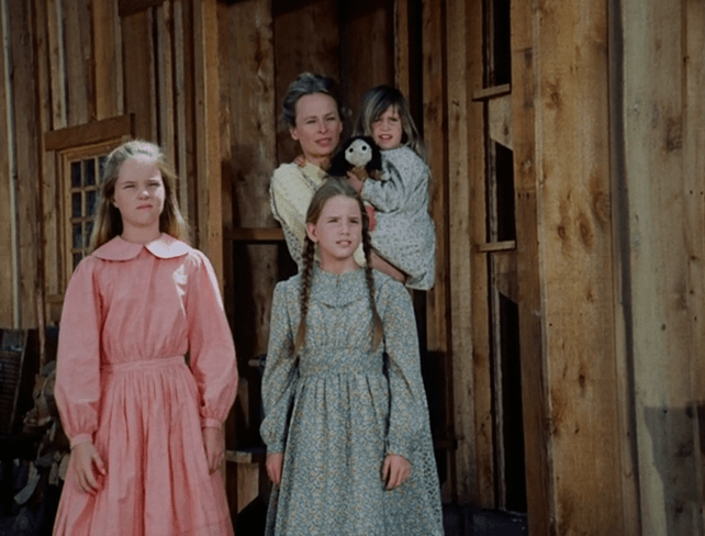 Then Voiceover Laura tells us time has passed again. Ma is seeing the girls off for their school day. (“I love Yellow Bonnet,” said Dagny. “It’s my favorite.”)