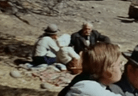 After the service, there’s another big picnic. I’m not sure if they always do this, or just when babies are born or die. Anyways, Charles and Mr. Edwards are sitting on a bench off to the side.