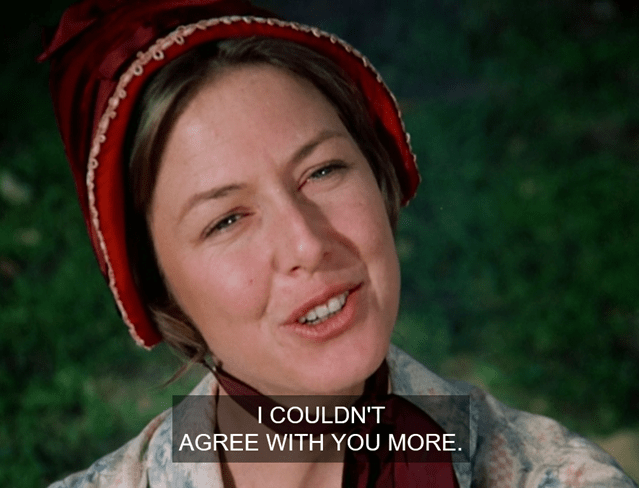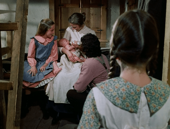 Mary says she’s not sure if she wants to have a baby, and Pa says, “When you get married, you’ll change your mind.” Gee whiz, Charles, that isn’t a prerequisite, nor does it guarantee she’ll change her mind.