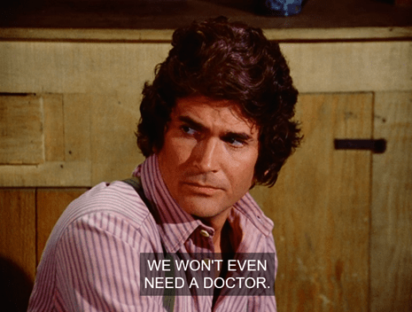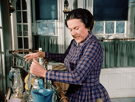 Back in the Mercantile, Mrs. Oleson is having abdominal pains. Unlike some higher-billed players on this show, Katherine MacGregor does not act like they’re giving her an orgasm.