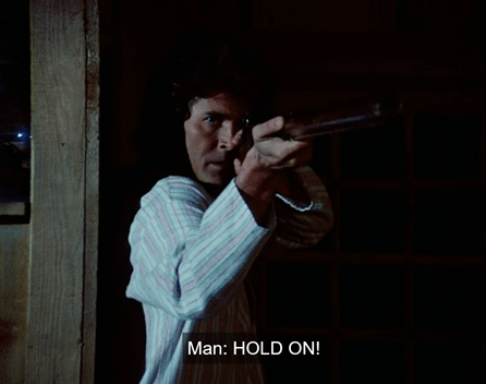 The man holds his gun over his head and introduces himself as “William O’Hara,” a “neighbor.” Caroline pops her head out and asks if everything’s okay.