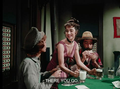 So Johnny comes back to the game room, where he does indeed clean up again. But when he looks for Miss Mimi to give her the money, the card sharps tell him she’s ill in her room.