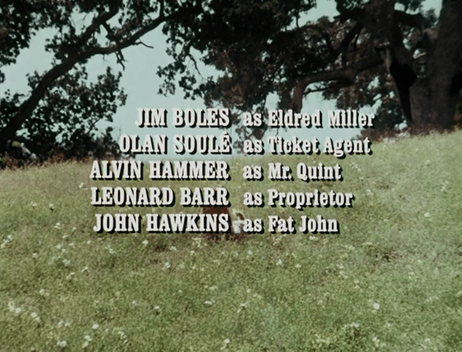 Meanwhile, Mr. Edwards has risen. Fearing Johnny has flown the coop, he also bangs on the ticket guy’s window, and he also gets yelled at. The ticket guy is Olan Soule, another very familiar character actor perhaps best known for voicing Batman in cartoons.