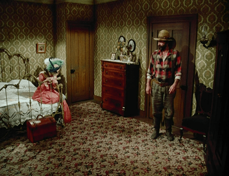 Assuming Mimi has fallen upon some sudden hardship, Johnny rushes to find her. We see she’s in her room at the hotel, counting her money. They actually used fake 1870s currency in this one; in “Money Crop” I noticed they just used modern bills.