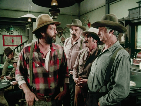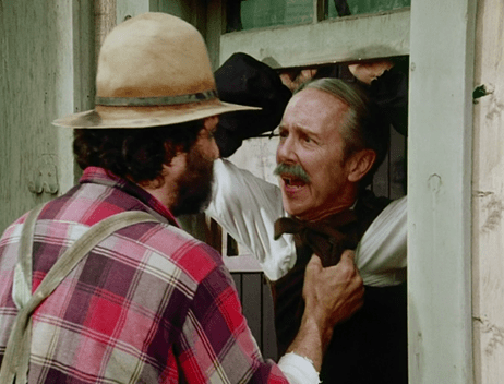 Charles, who’s also “milling about,” ah ha ha, warns Edwards to stay out of the saloon because of “what happened last time” . . . but he says it with a twinkle in his eye. Charles’s views on extreme behavior are totally dependent on how much he likes the person, aren’t they? Although I suppose Mr. Edwards never beat up any children. . . .