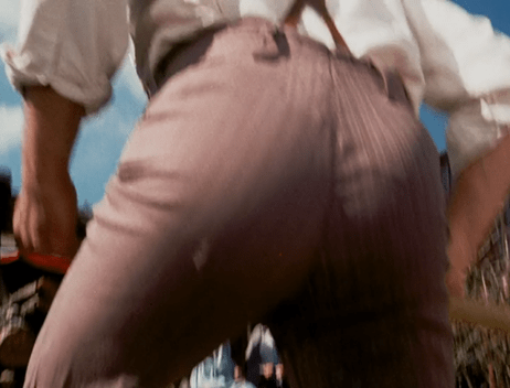 Actually, my description wasn’t perfect. Because in the earlier episode I failed to notice that if you looked closely when Charles called Jack to the house, you could see he was shirtless and wearing his stripper suspenders.