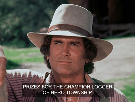 When the men return to the mill, they can’t even give Mr. Hanson their report without turning on one another. Hanson, amused, suggests they compete against each other in the Founder’s Day wood-choppin’ contest.
