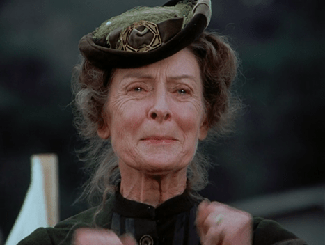 Mrs. Grandy and the Nondescript Helens scream encouragement to the choppers . . . but Mrs. Tyler looks like she’s going to die of fear, or is maybe having a stroke.