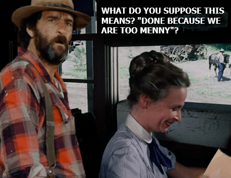Anyways, whether it was a short or long hiatus between death and service, we learn Grace has been taking care of the Sanderson kids since their mother passed. This works, as we previously saw her provide child care when Ma and Pa took poor Baby Freddie to Mankato.