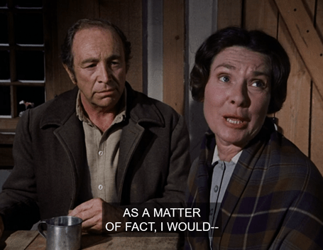 Laura eventually rolls over and forgives Pa. It’s not a very consequential scene, but both Grassle and Gilbert are good in it.