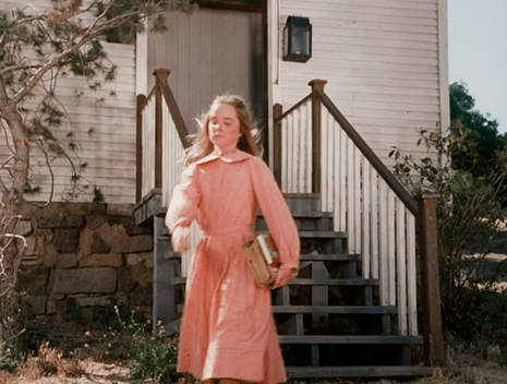 Perhaps smarting from Walnut Groovy’s suggestion that Cattail Lake is an overused location, this week Michael Landon has them at some sort of rocky stream instead. (Plum Creek, I assume, but some distance from the house?)