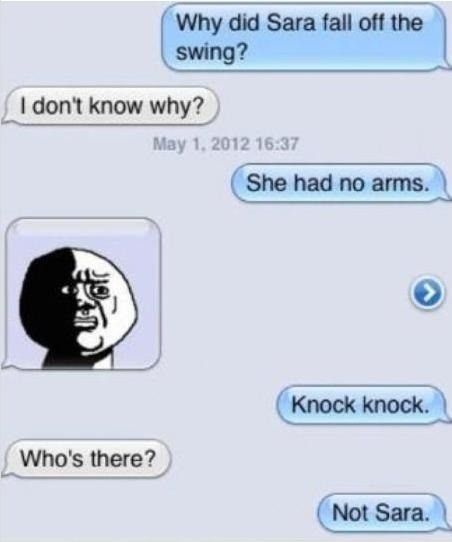 Laura should just bring along a book of knock-knock jokes next time.