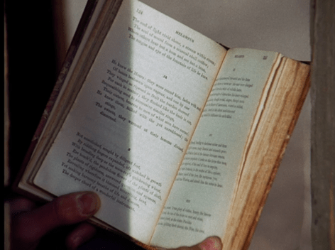 Oddly, rather than finding out exactly who this is, we first zero in on the text, which we can see is “Melampus,” by George Meredith. This poem was published in 1883, and so is just a smidge anachronistic. (Judging the events of the stories in sequence, I deduce we’re now in the spring of 1881 – though Walnut Grove being situated on a rift in the time-space continuum, we will soon find ourselves knocked backwards in time a bit.)