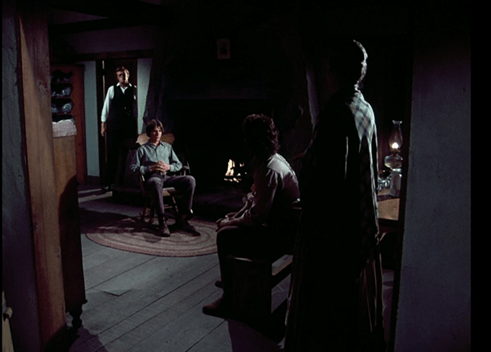 [It’s impossible to judge from a single episode, but if this one is representative of The Waltons as a whole, there are a lot of differences between it and Little House in terms of style (naturalistic rather than theatrical), tone (matter-of-fact rather than melodramatic), viewpoint (deeply conservative in its ideas about masculinity, with John-Boy outgrowing his “feminine” sensitivities over the course of the story), and general sensibility (e.g., its notion, hinted at several times in the dialogue, that things were better in the old days when people solved their own problems with guns). Maybe someday I’ll explore it further, but for now I’ll pass. Many thanks to Leslie for bringing it to our attention, though! – WK]
