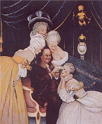 Pa laughs and confirms Franklin did invent a stove. (We actually had a wood-burning Franklin stove in my house when I was growing up. I burned my toe on it once, something awful.)
