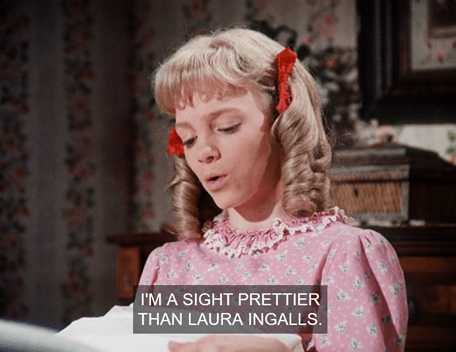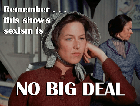 We then cut back to Nellie, who’s talking about how much prettier she is than Laura. (Sexist ideas are easier to take coming from the villain of the story, though certainly Nellie is pigeonholed by her culture as much as Laura is. Maybe more so.)