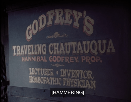 Anyways, the guy is making his pitch to Mrs. Oleson and Nels in the Mercantile.