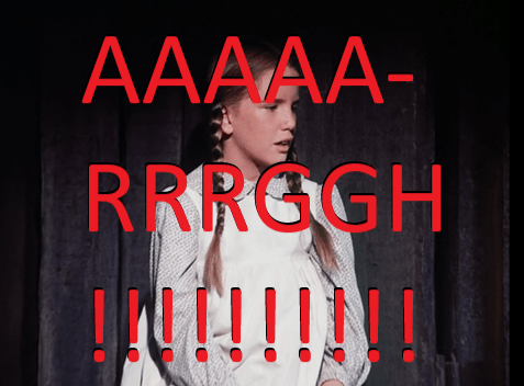 She tells Pa what happened, and says Laura is currently “up on Oak Hill” – a place we’ve never heard mentioned. Since every hill we’ve ever seen on this show has oaks on it (oaks being the only kind of tree that apparently grow in Walnut Grove’s vicinity), it must be a hard location to pinpoint.