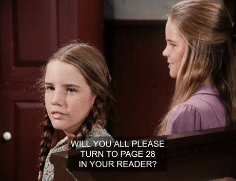 The class begins giggling. Laura looks down in horror, and Mary gives Nellie her patented you-fucking-piece-of-shit look.