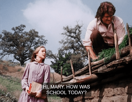 The next morning, Mary and Laura walk to school holding hands, which is nice.