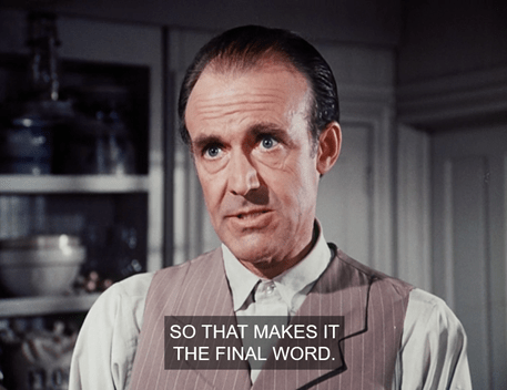 The salesman keeps pitching, but Harriet, addressing him as “Mr. Godfrey,” tells him to piss off, in withering fashion.