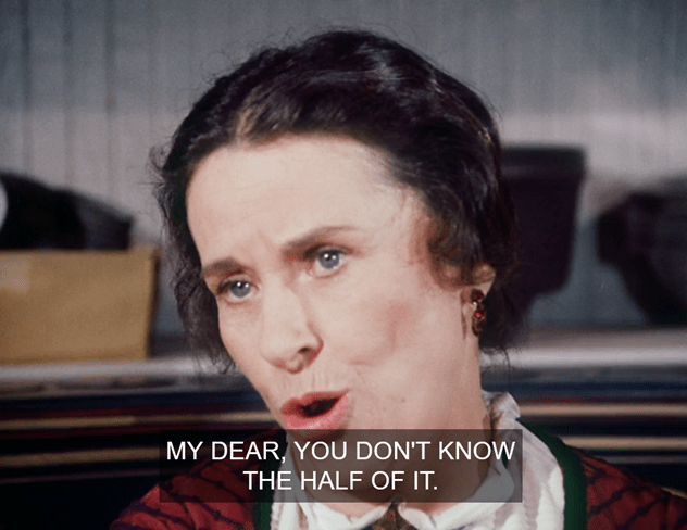 Then Charles goes to bed, on the way complimenting her on the new blouse she wore earlier. Caroline is like, what the fuck? as a sad tune plays on the soundtrack.