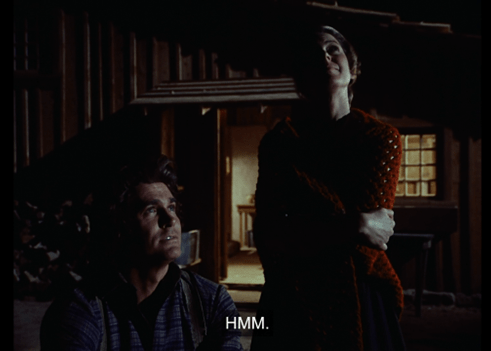 Annoyed, Mary says no. Then John says he’ll sneak over that night and meet her in the barn. Laura’s sitting right there, obviously listening, in fact making hilarious faces, so he isn’t being very discreet.