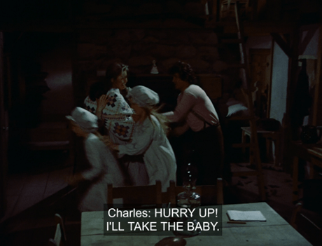 The Ingallses hustle out of the house. “I’ll take the baby!” Pa screams.
