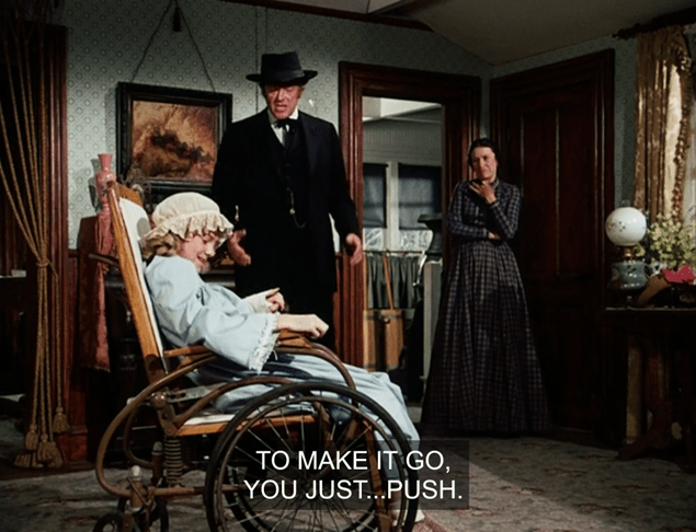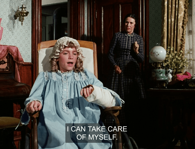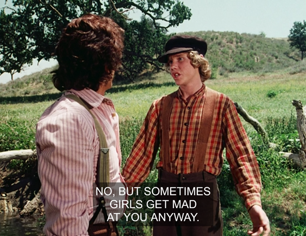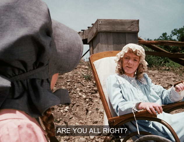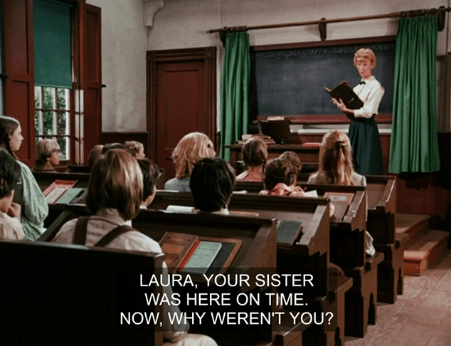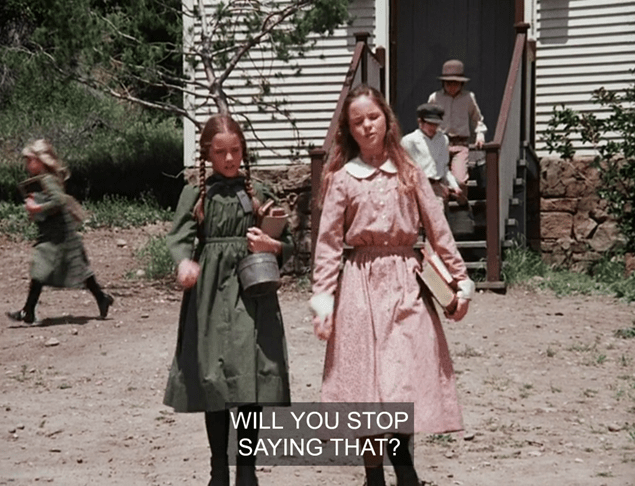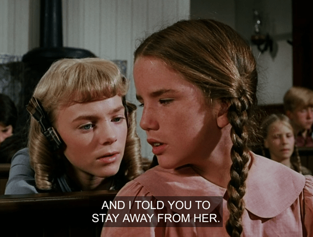 Well, you all know what happens next. In a moment that will live forever, Laura gleefully says, “Nellie, your mother wants you!” and PUSHES HER DOWN THE HILL AS HARD AS SHE CAN!