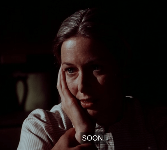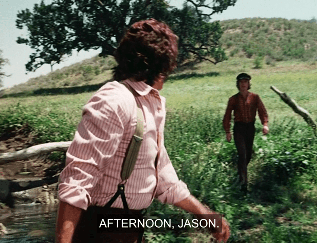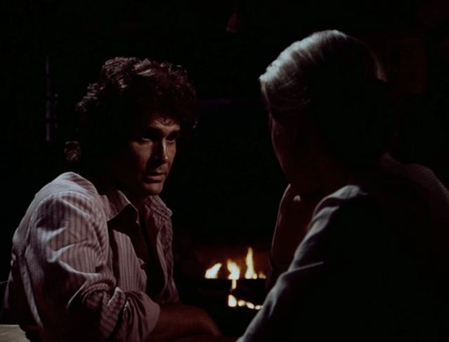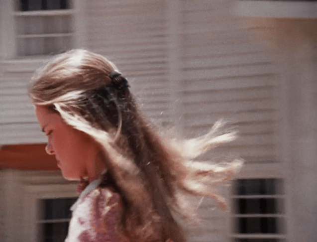 Well, the little girl runs straight at us, yet the camerawork is such we still can’t tell who the hell it is. (Landon directed this one, and wrote it.)