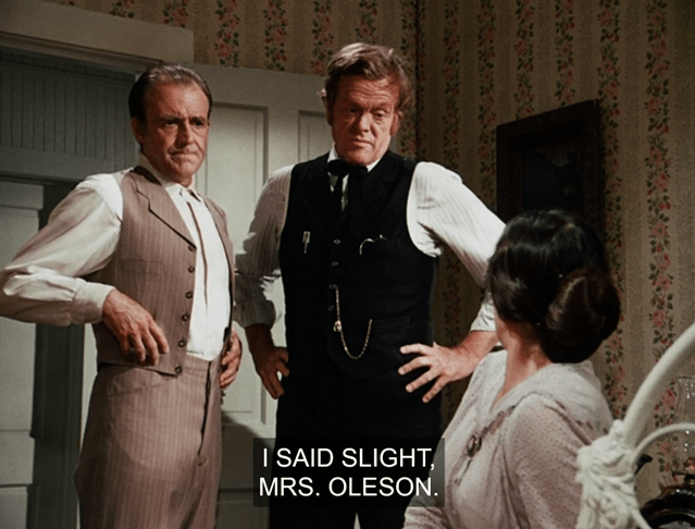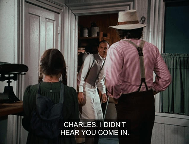 Doc leaves, and then Nellie basically orders her mother to go out to the Little House immediately to thank Charles, saying she can mind the store. Reluctantly (and rather unbelievably), Mrs. Oleson agrees.