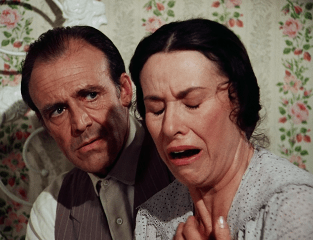 Mrs. Oleson, thinking she’s witnessing a miracle, faints.