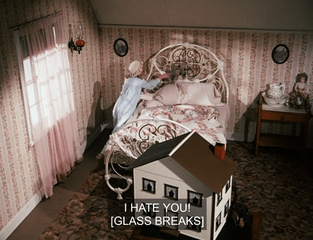 Then she trashes her own bedroom, even breaking poor Janet’s head once again!
