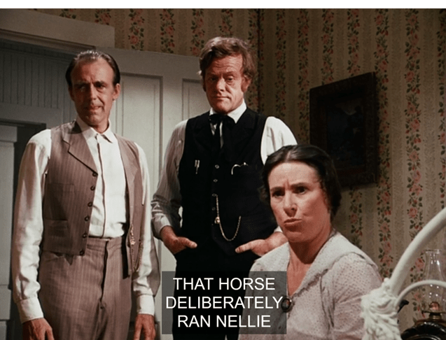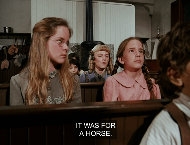 Sitting behind Laura (which is unusual), Nellie snorts, “It was for a horse.”