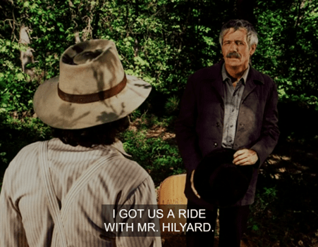 Charles climbs in the wagon with Lansford and Mr. Hillyard, who you can tell is played by Carl C. Pitti, better known to readers of this blog as Carl the Flunky!