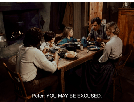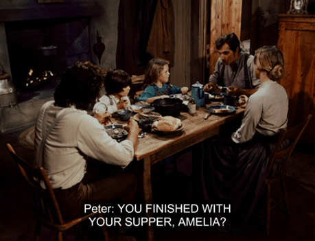 Grandpa’s barely gotten two words out when Grandma Laura interrupts to ask when Charles and Caroline are going to have another baby already. They’re quite bickery in this scene.