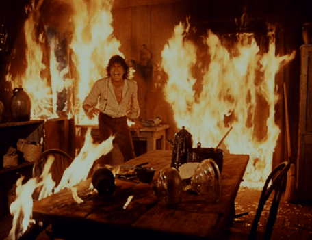 The house is engulfed in flames. Michael Landon is definitely doing his own stunts in this one.